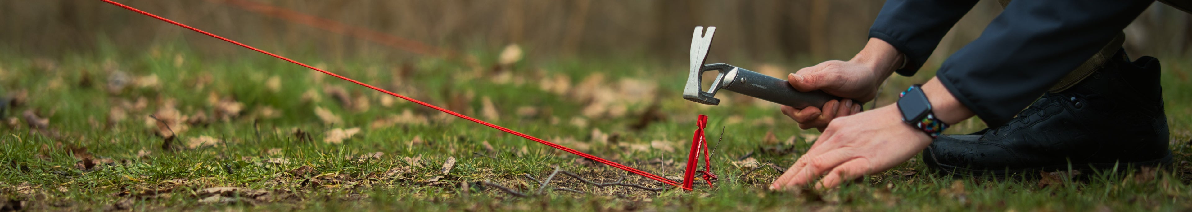 Vermijd het hameren van lichtgewicht tentharingen met brute kracht. Tik de tentharing rustig de grond in en wanneer je weerstand voelt en de haring niet verder komt, verplaats hem dan en probeer het een paar centimeter verderop nogmaals.